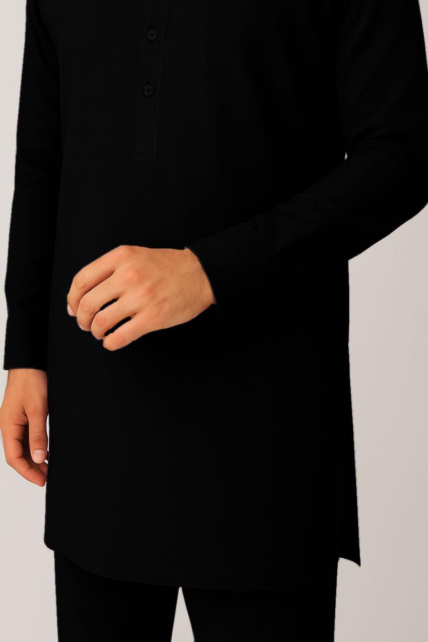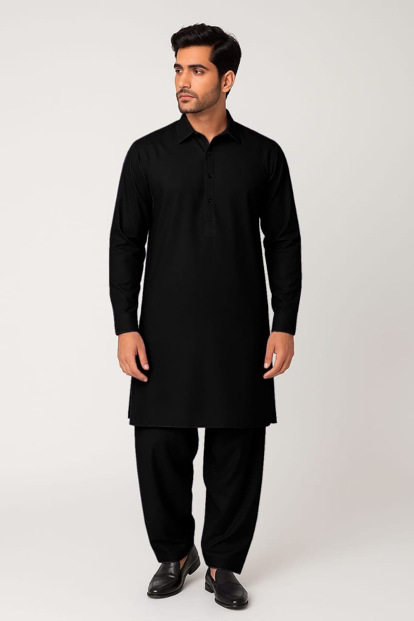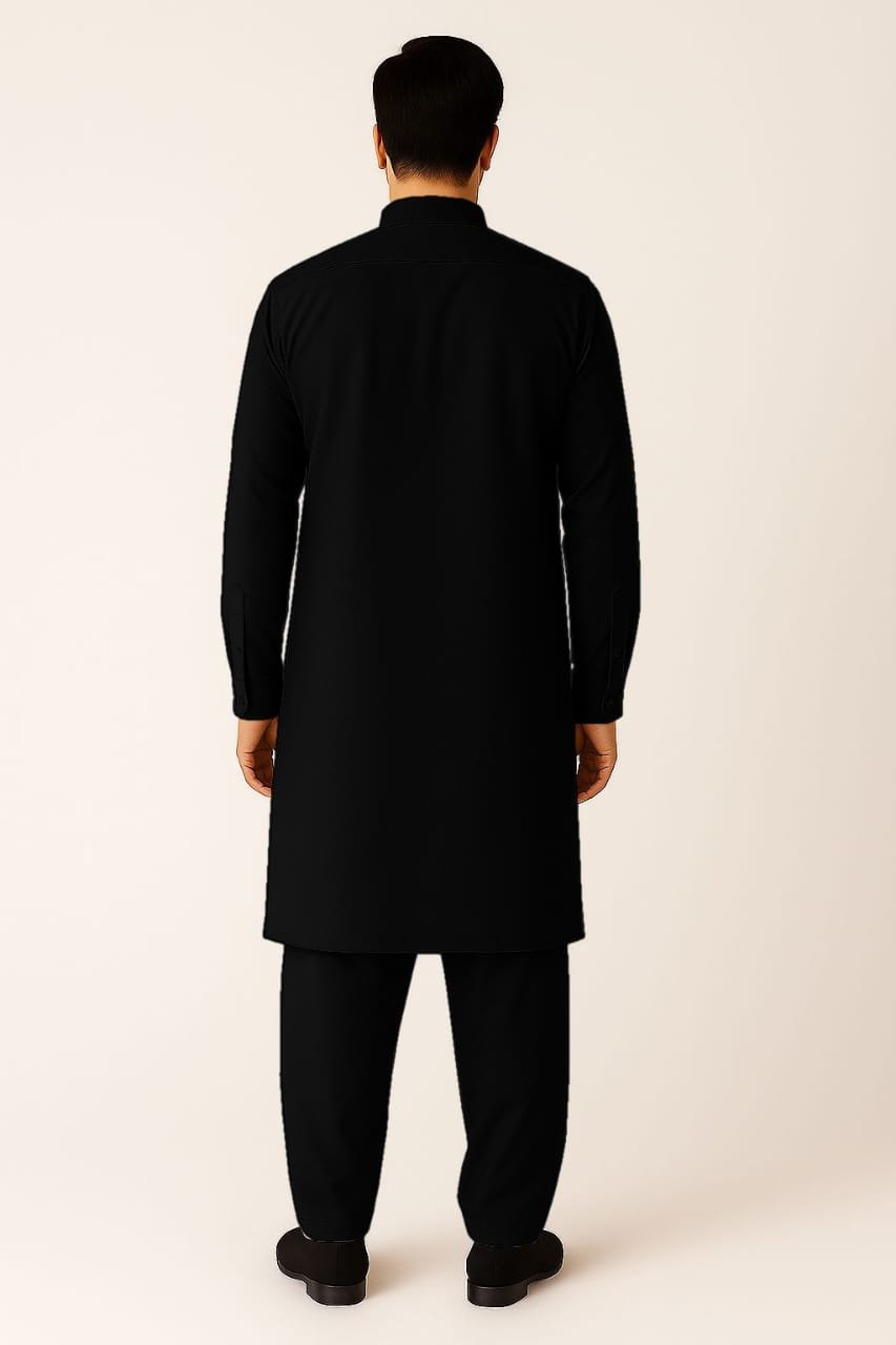 A timeless classic Kameez Shalwar, designed with refined detailing and a sophisticated black hue. Expertly tailored from premium wash & wear fabric, this ensemble blends elegance with everyday practicality. Perfect for both festive gatherings and daily wear, offering unmatched comfort and a dignified eastern look.